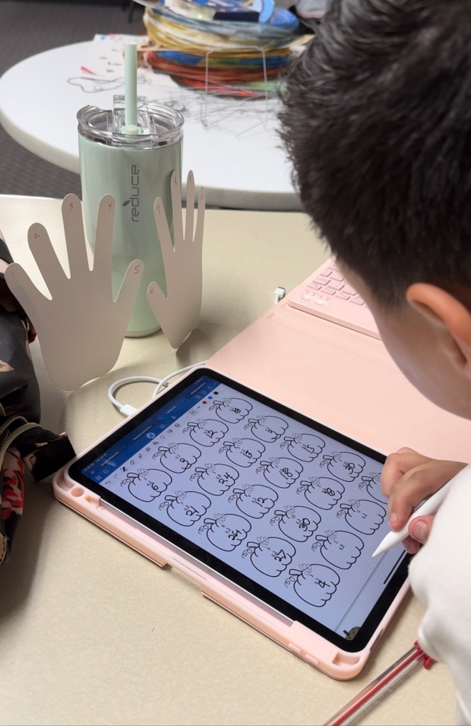 Using my iPad and pencil was also a really fun way for him to complete these work sheets. I found a few free printable on teachers pay teachers and downloaded them to Goodnotes. After he completed it, I could grade it with another color, erase the wrong answers, and he could correct them. I can also reset the page, so he could do the page again. No paper or printer or ink refills needed!The first time he did the page without an assistance, just reviewing out loud before we started, he completed this work sheet in four minutes. Four minutes, and there were a few errors. After we got out the hands and reviewed the process, the very second try he was right at two minutes, so it really seemed to help his focus by having a visual process to convert counting by three’s into multiplying by three’s.