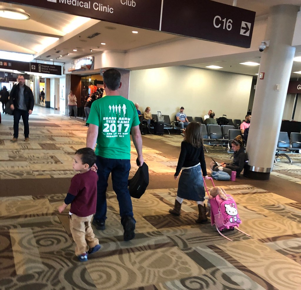 Once in New Orleans, however, they didn’t have any good options for getting us to Nashville. Well, why did we even get sent here? One lady said we could get a flight back to Houston and then another one to Nashville from there. That felt pretty stupid. Finally, there was one that afternoon that opened up. There was enough for standby for me and the kids, but not for Nathan. He would probably only be able to fly in around midnight that night. What a mess. I hated the plan of splitting up, but it was that or go back home. We had to go for it. They were able to find us a place on the back of the plane and shuffle some people around so that I could sit together with the kids. Just as we were settling in, Nathan walked in. They had found him a spot just in the nick of time. Off we flew to Nashville, finally. Our family picked us up and we went to supper instead of breakfast followed by going to the evening service at Cornerstone instead of the Sunday main.